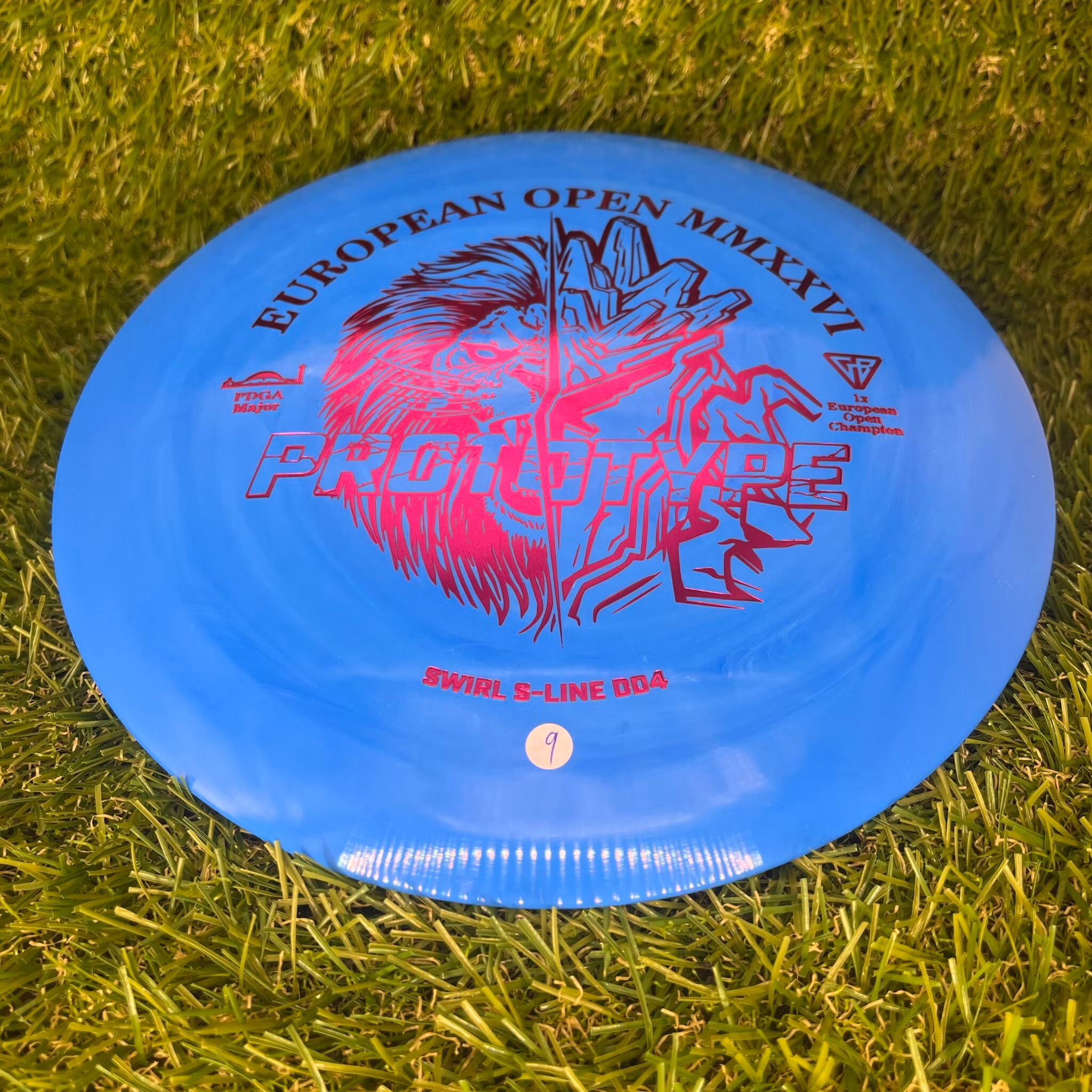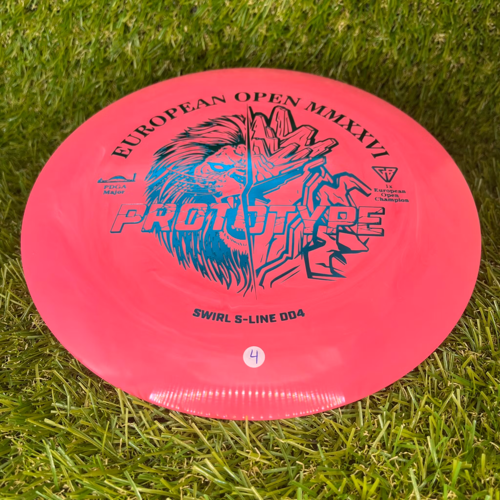 The sales of this product directly benefit the 2026 European Open held in Tallinn, Estonia in late June. The artwork pays homage to European Open's long-running emblematic animal, the Lion, paired with design picked by the defending European Open champion, Team Discmania's Gannon Buhr[link]. The disc is molded in our durable and grippy Swirl S-line material. As far as the swirls go, the color transitions on most of the discs tend to be fairly subtle.