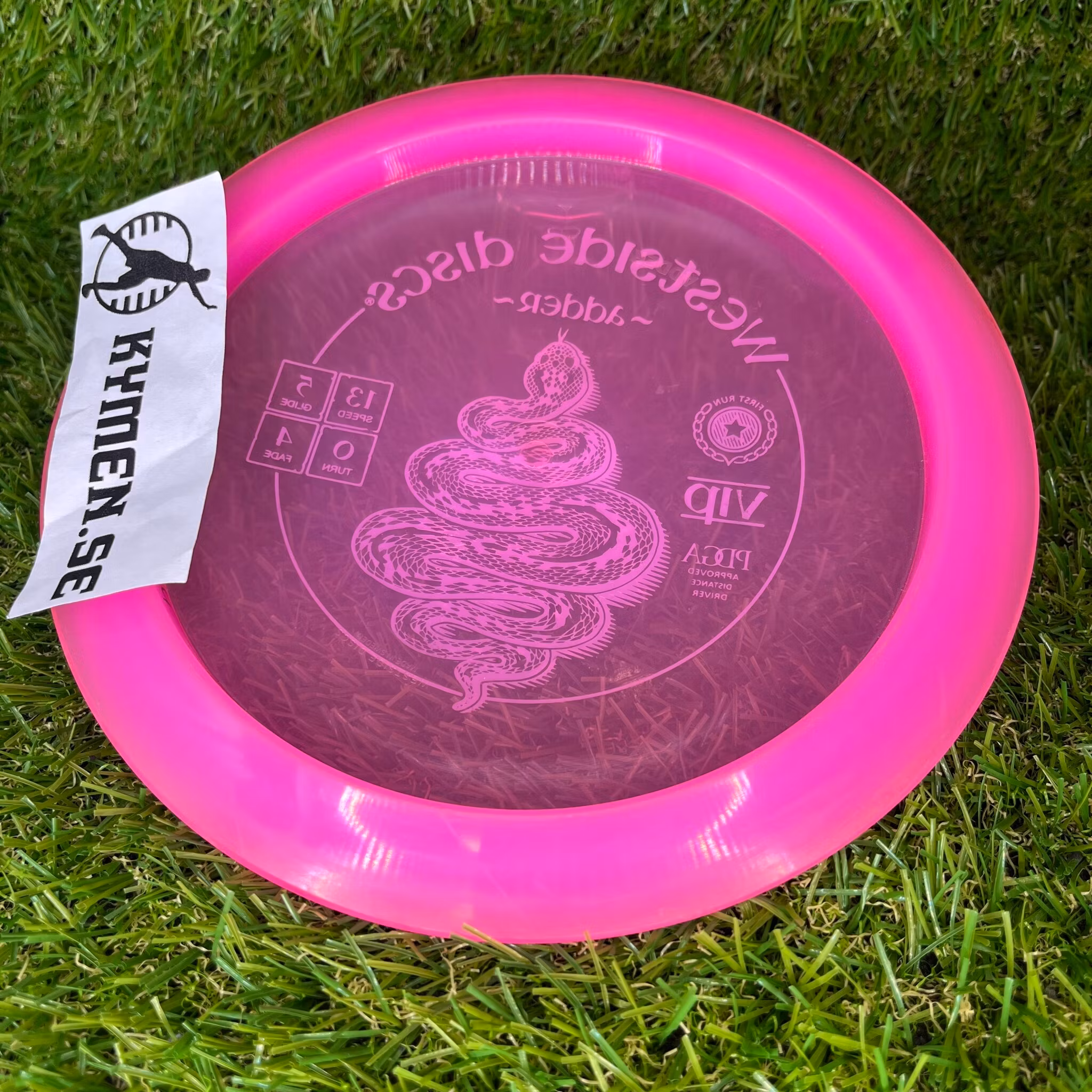 The Adder is ready to bail disc golfers out of the windiest of conditions. With high speed and a pop top giving good glide, only the biggest arms will have a chance to make this disc turn over. For everyone else, it will be a very useable utility disc for when you need a distinct fade with speed through the flightpath.